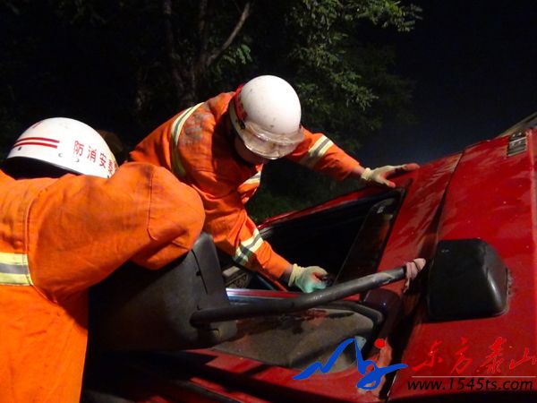 8月24日凌晨3時(shí)50分位于京滬高速60公里處,一輛大貨車(chē)撞上護(hù)欄,由于速度過(guò)快,滑行數(shù)十米后,側(cè)翻在路邊的排水溝,油箱破損,燃油大量泄漏,空氣中汽油味道濃重,有人員被困在車(chē)內(nèi),情況十分危急。泰安消防支隊(duì)新汶中隊(duì)接警后迅速出動(dòng)2車(chē)12人趕往現(xiàn)場(chǎng)。